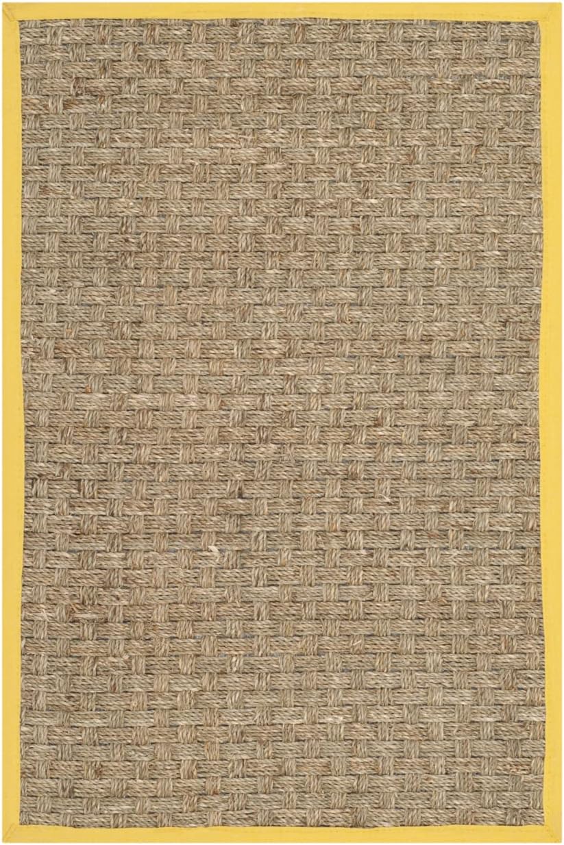 The SAFAVIEH NF114X accent rug brings organic elegance to any space. Crafted from sustainably sourced seagrass, it showcases a basketweave pattern in natural and gold hues with a clean cotton border. The low-profile (¼″ pile) design is machine-woven and sturdy, while the felt-dotted backing provides grip and floor protection—making it perfect for busy households.