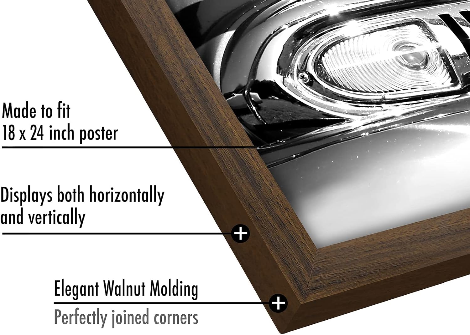 Elevate your space with the Americanflat 18×24 Poster Frame from the Epic Collection. This gallery-style wall frame combines a beautifully detailed walnut-inspired woodgrain finish with wide molding to highlight oversized photos, art prints, or posters.